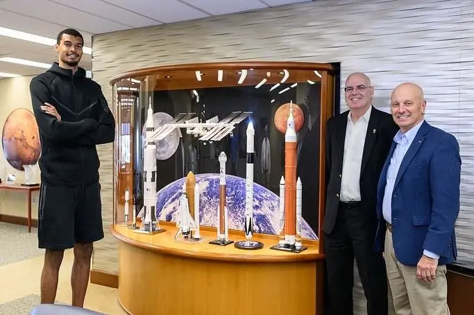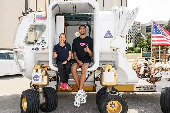 维克托-文班亚马今日造访NASA约翰逊航天中心,参观了车辆模拟设施和任务控制中心,并体验了月球车驾驶。